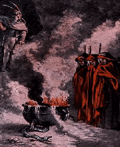 A typical Celtic image (center) from one of O'Keenans' books depicts several Druids using a