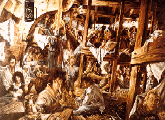 A painting (right - duh the only place left) of the misery typical of a "coffin ship" like the one on which O'Keenan immigrated to America, losing his wife along the way to scurvy, dysentery and extreme PMS.